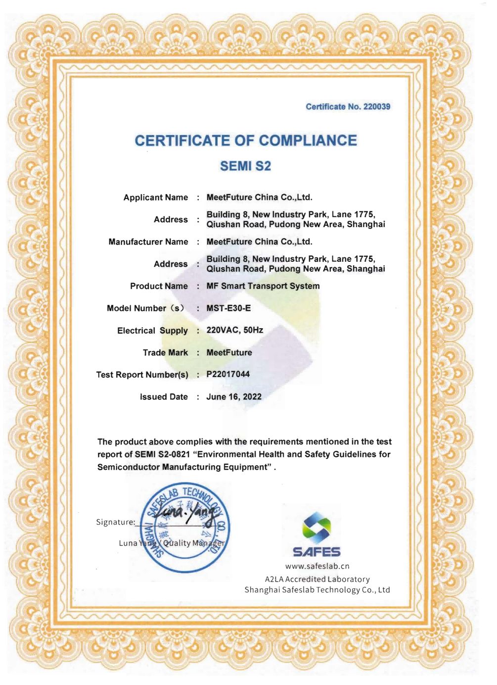 自 2018 年以来,Ebpay科技取得了国际标准化组织(ISO)质量管理体系(ISO 9001)、环境管理体系(ISO 14001)和职业健康安全管理体系(ISO 45001)认证。在AMHS产品技术体系领域,我们遵循半导体设备标准通讯协议,包括SEMI E37、 E82、E30、 E84、E10 等,使其易接入半导体晶圆厂MES系统来实现数据交互。